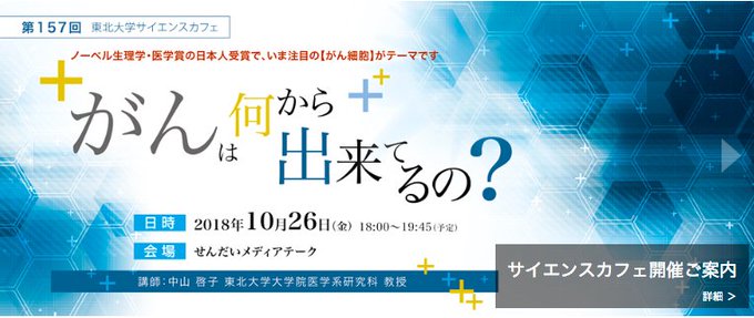 東北大学サイエンスカフェ第157回「がんは何からできてるの?」(10/26) を投稿しました。 #エキサイトブログ